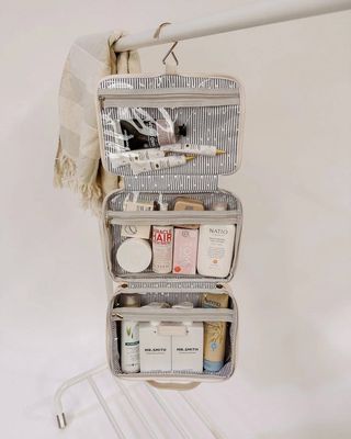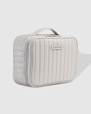 The Louenhide Maggie Grey Cosmetic case is a beautiful quilted large toiletries bag. Designed to be functional and spacious with three clear zipped compartments to store your makeup, skincare, and toiletries all in one. This hanging cosmetic bag is designed with a hook to easily use while travelling. Take with you on weekend adventures or around the world!