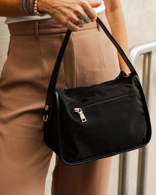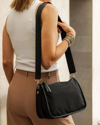 The Louenhide Milan Black Nylon Crossbody Bag effortlessly combines an elevated minimal aesthetic with everyday functionality. This stylish, convertible crossbody bag features an adjustable and detachable sateen guitar strap and a comfortable vegan leather shoulder strap, which tucks securely under the bag with a press stud closure when not in use. Lightweight and durable, the nylon material compliments an urban, street style aesthetic while remaining reliable for a bustling lifestyle. Compartmentalise your life with the internal and external slip and zip pockets, ensuring your belongings are safe and secure. With its customisable features, organised interior, and sleek design, the Milan Beige effortlessly blends fashion and function, making it your next go-to accessory.