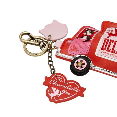 Special delivery! The Chocolate Box Key Charm is here to deliver a sweet treat. Made from vegan leather and shaped like a chocolate delivery van, it features a ring and clasp for easy attachment to your keys or bag. The charm is embellished with embroidery and printed details, along with two mini charms that will delight you all season. From cupid's heart to your door, this adorable charm is sure to hit the target!