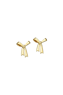 The beloved Karen Walker bow, tied just so, has been cast in divine sterling silver and electroplated with 2 micron of 14-carat yellow gold to create a perfect pair of stud earrings.