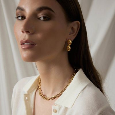 The Josie Earrings by Zahar showcase a sleek double-drop silhouette with softly curved, polished forms. Modern yet timeless, they offer a refined statement that transitions seamlessly from day to night.