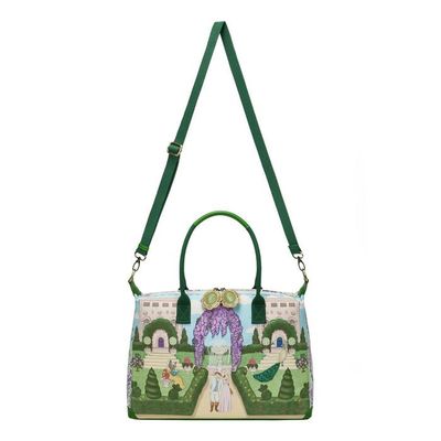 Take a breath and smell the wisteria... Our next installment of Vendula Heritage visits the regal Edwardian home of the Lord and Lady of the manor. Visit them for the weekend with the Vendula Heritage - Regency Gardens Bonnie Weekender. With two comfortable handles and a detachable strap, it ensures you can always carry it comfortable. It's roomy main compartment has multiple pockets that will hold everything you need for strolls, stay-cations, and splendid promenades. Watch the love story unfold as they promenade through the ornate scenery, where peacocks and squirrels are abundant and the scent of wisteria flows through the air.