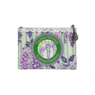 A tender little coin purse kissed with lace, Vendula Heritage - Regency Gardens Zipper Coin Purse is perfect for promenades where a single glance can make your heart flutter faster that the petals overhead. This little vegan leather gem fits cash and cards and comes with a handy chain for attaching to your keys or bag. Elegant yet playful, it invites you to wander through life's everyday errands as if strolling along sunlit paths in a grand estate. where romance lingers in the air like the scent of wisteria.