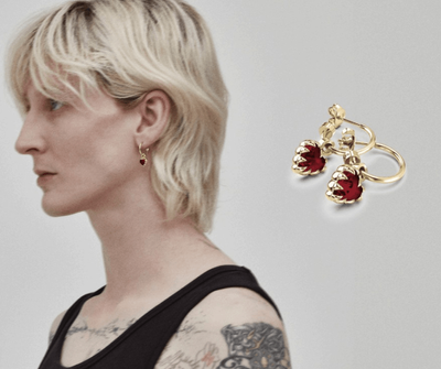 Pre-Order - Stolen Girlfriends Club Love Claw Anchor Earrings Red Garnet Gold Plated