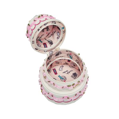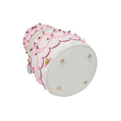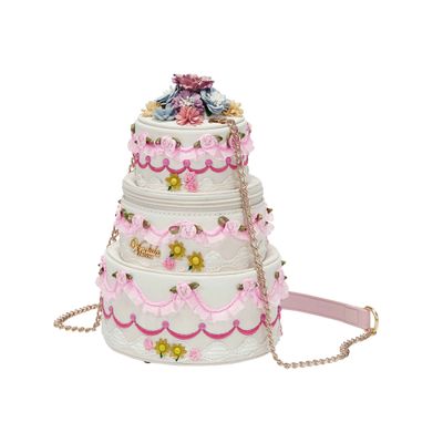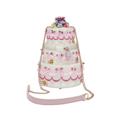 The Posies and Patisseries Cake Bag is decorated with pleated ribbons and roses galore: you really can have your cake and carry it too! With its roomy main compartment and practical chain strap, this bag is your dream companion to any special event. Store your essentials and keep sweetness by your side with this floral confection. This irresistibly sweet bloom of petals, pastels, and patisserie charm is the perfect addition to your collection.