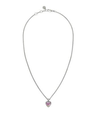 This sterling silver pendant necklace by Stolen Girlfriends Club features a heart-cut mystic quartz secured in sculptural claw settings. Suspended from a fine cable chain with lobster clasp closure, the polished finish enhances the faceted stone’s tonal variation. A refined statement within the brand’s contemporary jewellery collection.