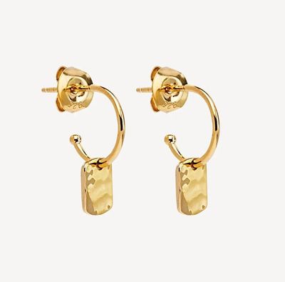 Evoking the imprints of raindrops on sand, these gleaming earrings are as timeless as they are on-trend. High polished sterling silver hoops capture rectangular hand-beaten tags, which swing jauntily as you move. Making a statement on their own, they look extra stunning when paired with the Silver Tigger Necklace.