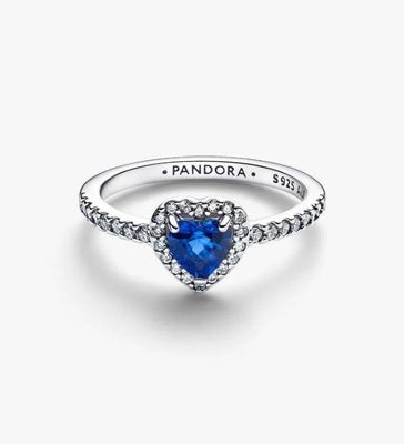 Pandora September Crystal Birthstone Elevated Princess Blue Heart Ring