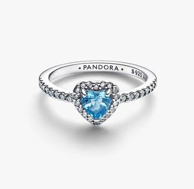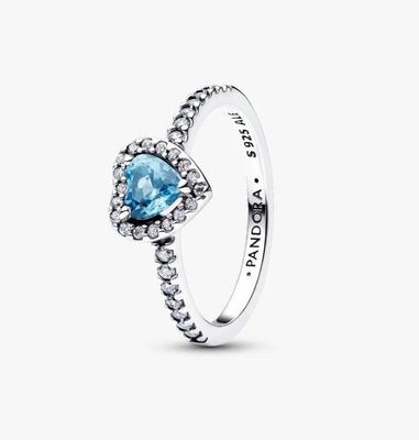 Pandora March Crystal Birthstone Elevated Light Blue Heart Ring