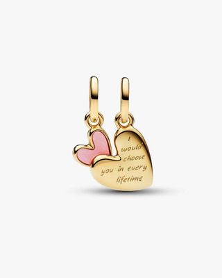Pandora Pink Mother & Daughter Splittable Dangle Charm 14k Gold Plated